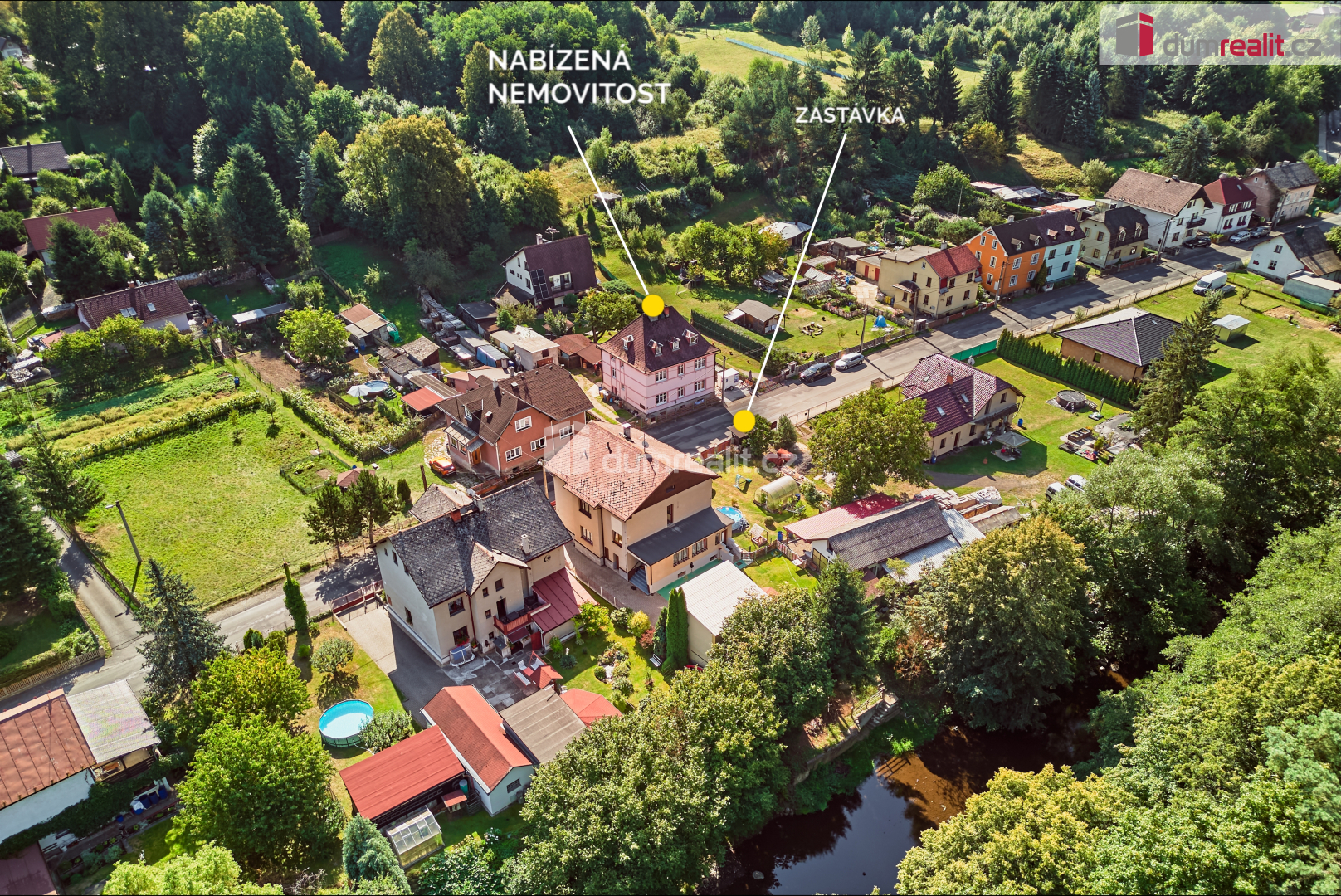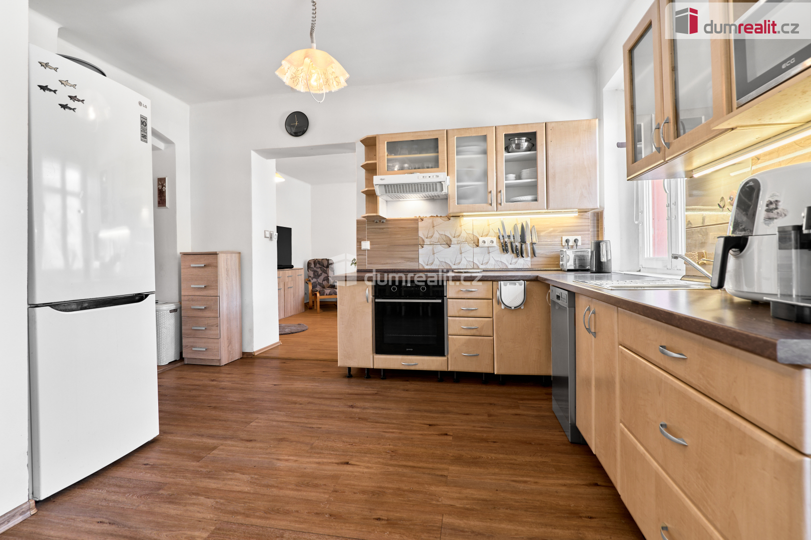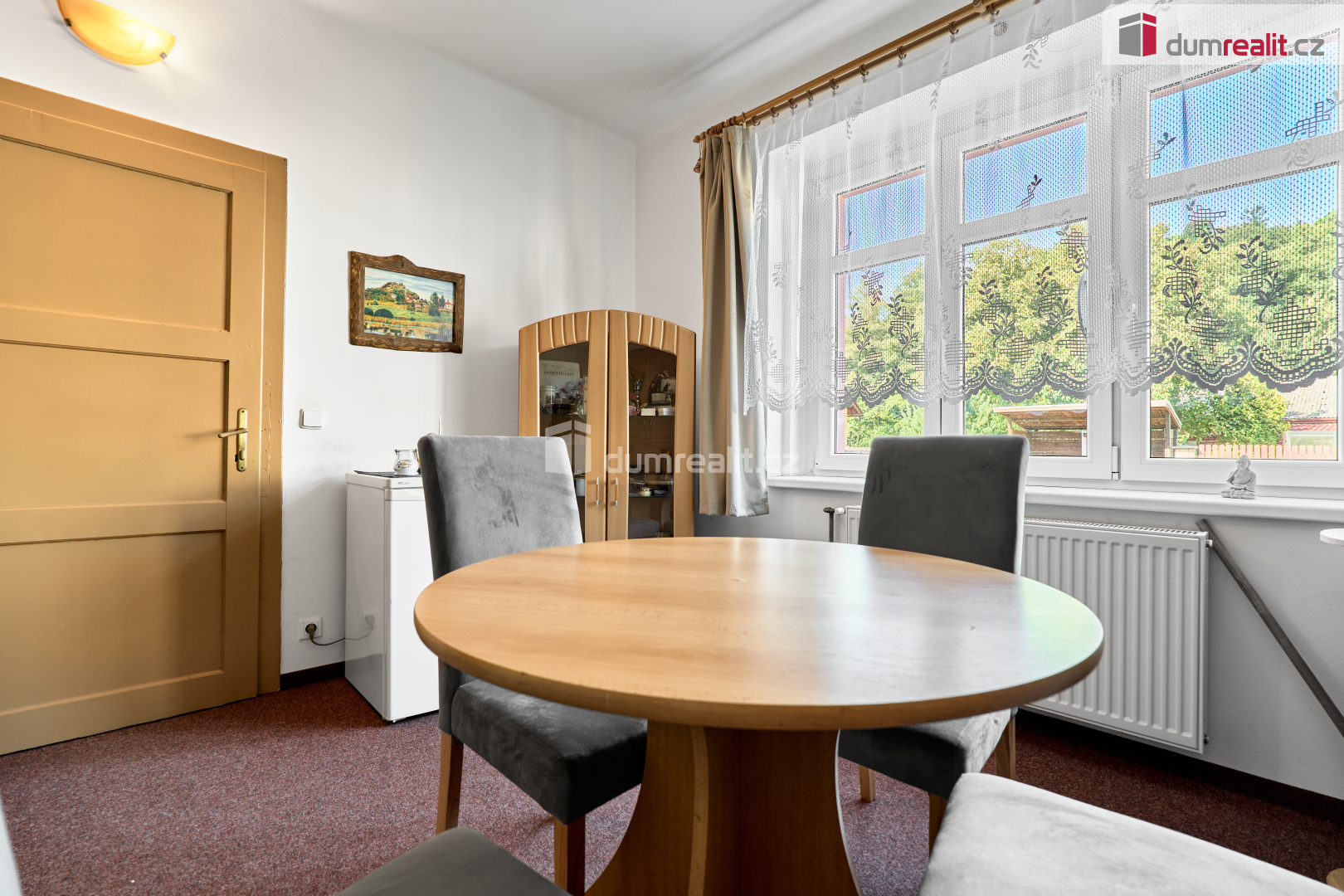 Dumrealit.cz Vám zprostředkuje prodej prostorného rodinného domu v Radošově, části obce Kyselka nedaleko Karlových Varů. Tento zděný dům s celkovou podlahovou plochou 210 m² (+ sklep, + půda) na pozemku o výměře 535 m² nabízí možnost bydlení pro dvě rodiny. Dům se skládá z dvou samostatných bytů 3+1 v 1.NP a 2+1 v 2.NP, každý s koupelnou a WC. Dále je zde prostorná půda s možností vybudování dalšího samostatného bytu. V současné době jsou zde 2 samostatné pokoje (dětské pokoje) a příprava na vytápění a elektřinu. Z větší části dům prošel před několika lety postupnou modernizací: plastová okna vč. parapetů, omítky, stropy, rozvody elektroinstalace, vody, a topení vč. těles radiátorů. Dům je celopodsklepený a je napojen na veškeré inženýrské sítě (voda, kanalizace, elektřina, plyn). Vytápění domu a ohřev vody je zajištěn kotlem na tuhá paliva se zásobníkem. Na pozemku se nachází garáž a zastřešená pergola pro relaxaci a posezení s přáteli. Díky klidné lokalitě a snadné dostupnosti občanské vybavenosti máte vše potřebné na dosah ruky. Nenechte si ujít tuto skvělou příležitost k bydlení v malebném prostředí nedaleko Karlových Varů. Vzdálenost města Ostrov 12 min. automobilem nebo Karlových Varů 17 min. automobilem. Pro více informací a prohlídku nás neváhejte kontaktovat. Vzhledem k tomu, že před zadáním do inzerce nebyl vyhotoven PENB, je tento dům v souladu s platným zákonem zařazen do energetické třídy G. Ev. číslo: 652221.