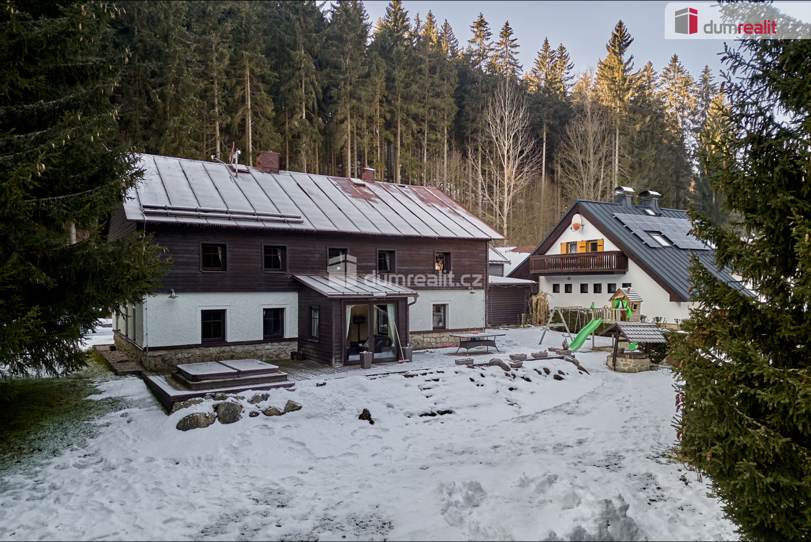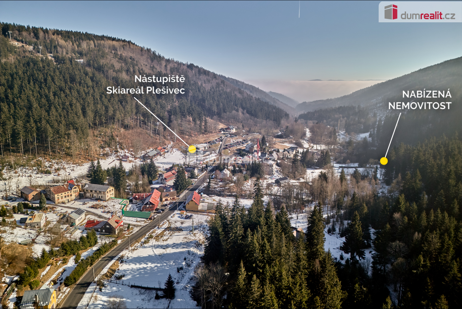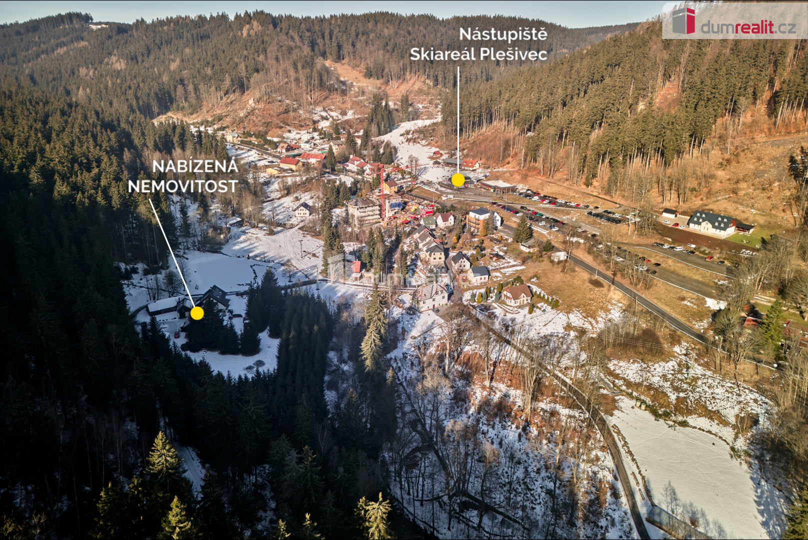 Dumrealit.cz Vám zprostředkuje prodej stavebního pozemku s investiční příležitostí v Krušných horách o celkové výměře 6.666 m². Pozemek se nachází ve vesnici Pstruží, části obce Merklín v těsné blízkosti nástupní lanovky Plešivec. Pozemek je v ÚP města Merklín veden jako stavební (plochy smíšené obytné), což umožňuje výstavbu například rodinných domů, bytových domů, domů veřejného ubytování a stravování a další využití dle ÚP. Podmínky: koeficient zastavění pozemku 40% (cca 2.300 m²), podlažnost nad terénem max. 3NP + podkroví. Součástí tohoto pozemku je rodinný dům o dispozici 4+kk. RD je zděný, částečně podsklepený, s podlahovou plochou 230 m². Dispozice domu zahrnuje prostorný obývací pokoj s krbovými kamny, kuchyň s kuchyňskou linkou na míru, jídelnu, 3 ložnice s vlastními koupelnami a WC. V přízemí je finská sauna vč. sprchy a odpočívárny, zimní zahrada s terasou a vstupem na zahradu. Dále je zde prostorná chodba vč. schodiště, zádveří, samostatné WC a technická místnost. Dům má velký půdní prostor (možnost vybudování další obytné místnosti). Vytápění domu a ohřev vody je zajištěn plynovým kotlem. Dům disponuje elektronickým zabezpečovacím systémem, finskou saunou, venkovní vířivkou a dalšími luxusními prvky. Po kompletní rekonstrukci, kdy byl kladen důraz na kvalitu použitých materiálů, provedení ale i vybavení domu, je dům připraven k okamžitému nastěhování bez dalších investic. K domu patří luxusní víceúčelová společenská místností až pro 20 lidí. Společenská místnost je vybavena například krbem vč. grilu, kuchyňskou linkou, WC a prostorným podkrovím (možnost využití pro přespání hostů či jako dětská herna). Dále venkovní ohniště, venkovní altán pro grilování a posezení s přáteli, garáž pro uskladnění zahradní techniky, dřevník nebo venkovní kryté stání pro automobily. V těsné blízkosti domu (3 min. chůze) se nachází nástupní stanice lanovky Plešivec. V blízkosti jsou také restaurace a turistické atrakce. Vzdálenost od města Ostrov 15 min automobilem nebo od Karlových Varů 20 min. Tuto nemovitost lze hradit hypotečním úvěrem, který Vám rádi pomůžeme vyřídit v našem hypotečním centru. Kontaktujte nás pro více informací nebo prohlídku. Ev. číslo: 650257.
